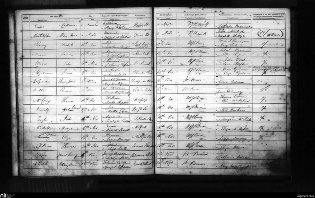 St. Mary's, Belfast city; County of Antrim; Diocese of Down and Connor. Baptisms, Nov. 1876