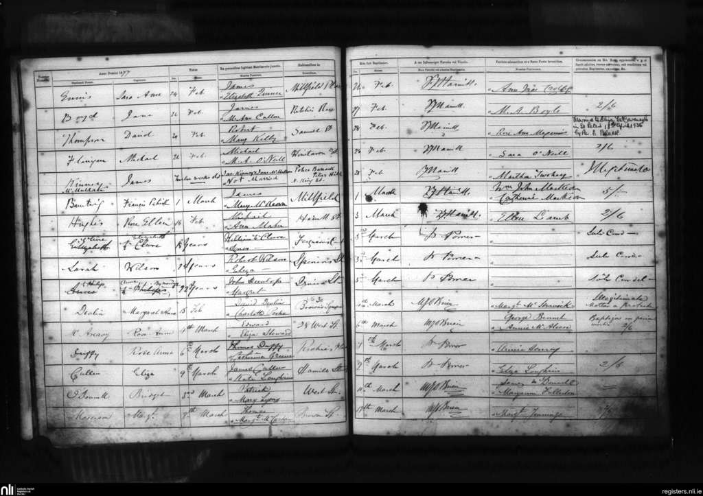St. Mary's, Belfast city; County of Antrim; Diocese of Down and Connor. Baptisms, Feb. 1877 to Mar. 1877
