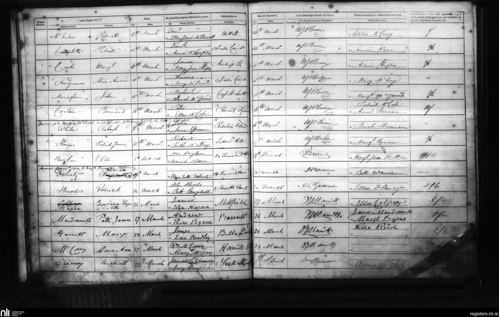 St. Mary's, Belfast city; County of Antrim; Diocese of Down and Connor. Baptisms, Mar. 1877 to Apr. 1877