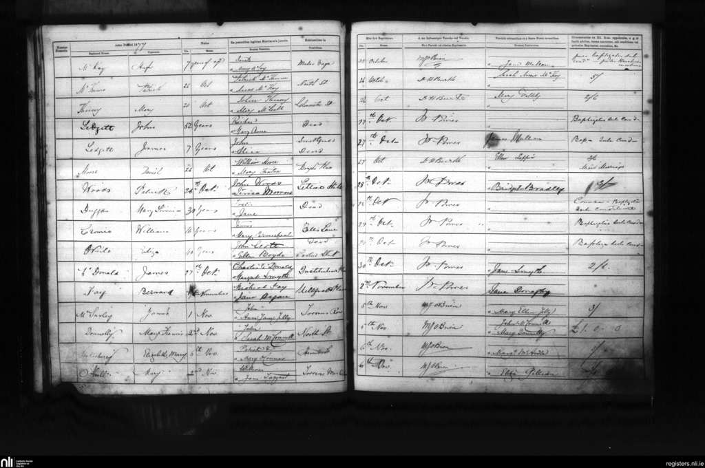 St. Mary's, Belfast city; County of Antrim; Diocese of Down and Connor. Baptisms, Oct. 1877 to Nov. 1877