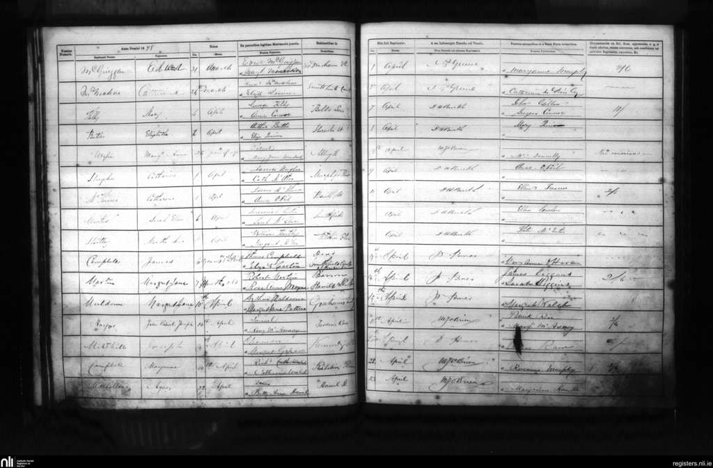 St. Mary's, Belfast city; County of Antrim; Diocese of Down and Connor. Baptisms, Apr. 1878