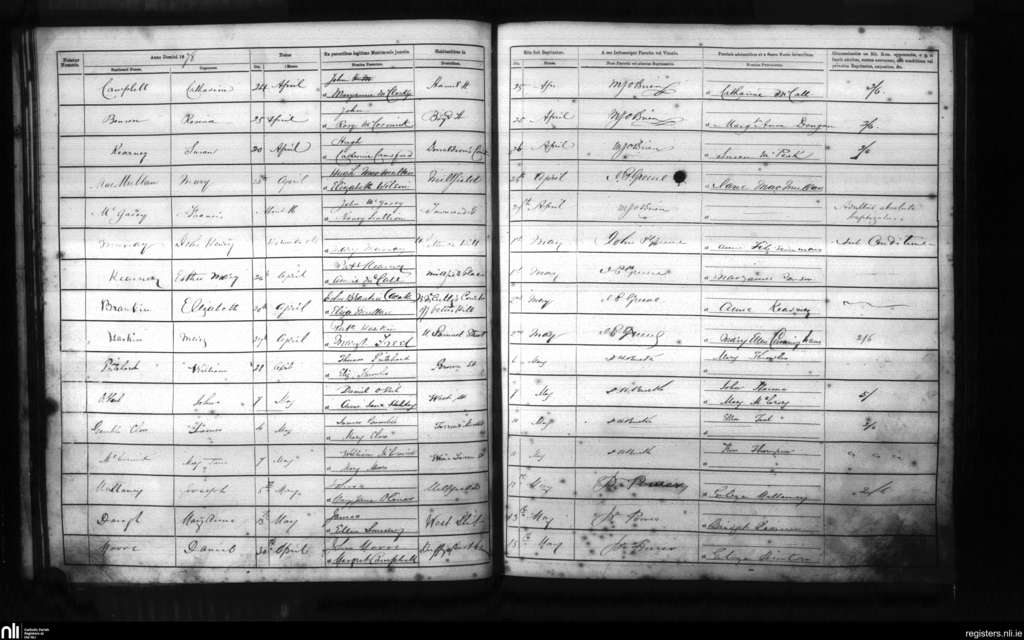 St. Mary's, Belfast city; County of Antrim; Diocese of Down and Connor. Baptisms, Apr. 1878 to May 1878