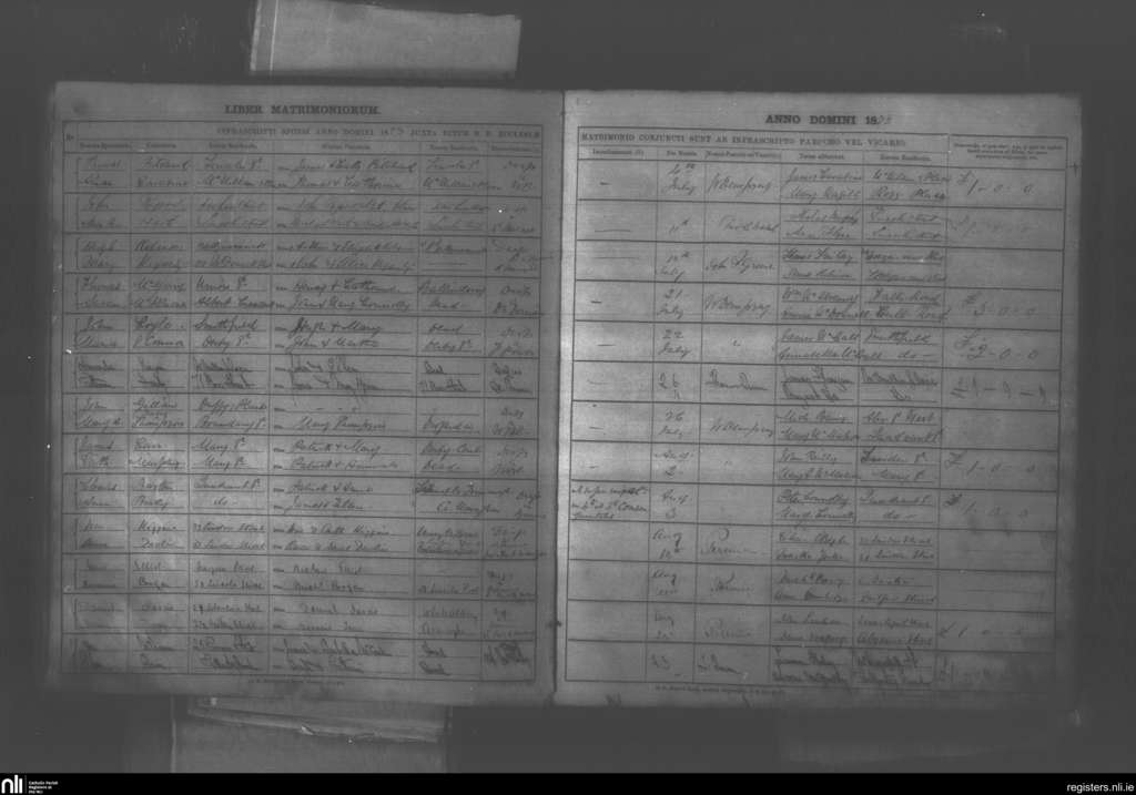 St. Peter's, Belfast city; County of Antrim; Diocese of Down and Connor. Marriages, July 1873 to Aug. 1873