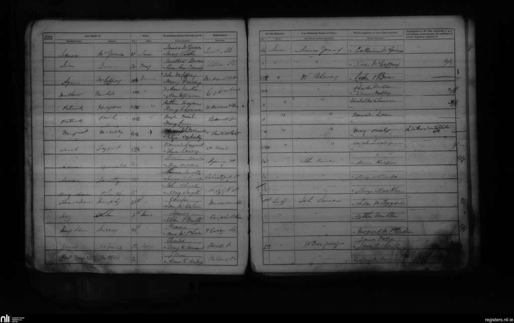 St. Peter's, Belfast city; County of Antrim; Diocese of Down and Connor. Baptisms, June 1871 to July 1871