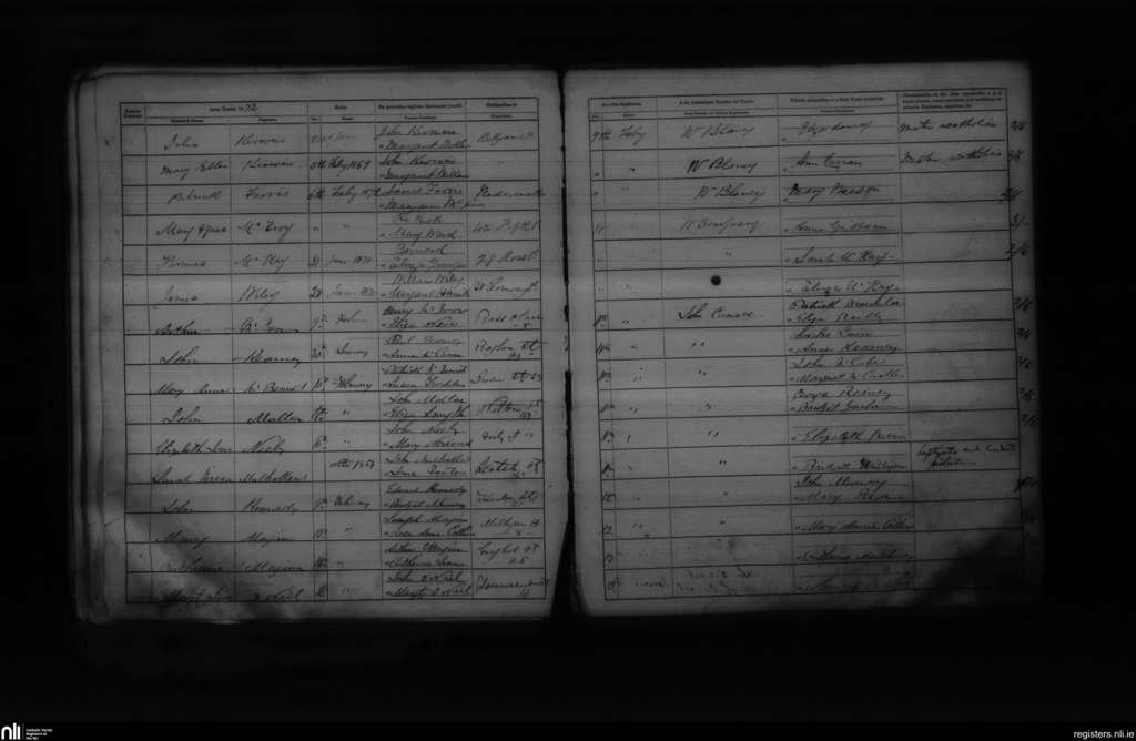 St. Peter's, Belfast city; County of Antrim; Diocese of Down and Connor. Baptisms, Feb. 1872