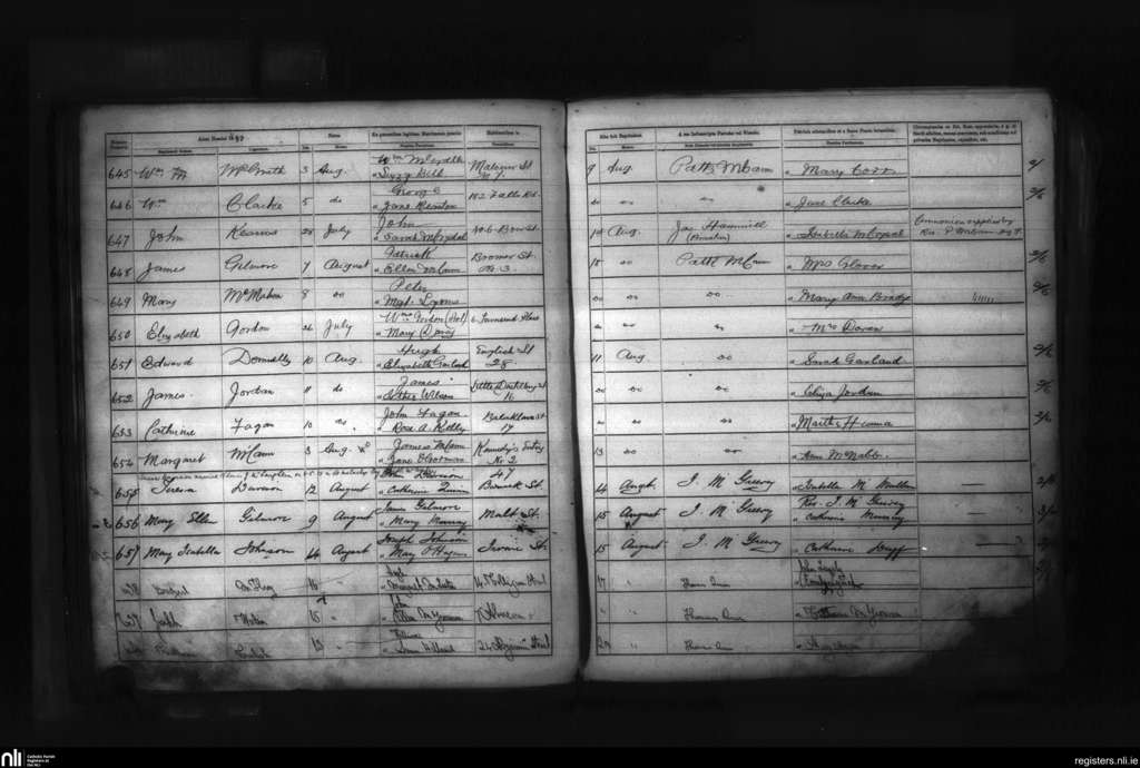 St. Peter's, Belfast city; County of Antrim; Diocese of Down and Connor. Baptisms, Aug. 1880