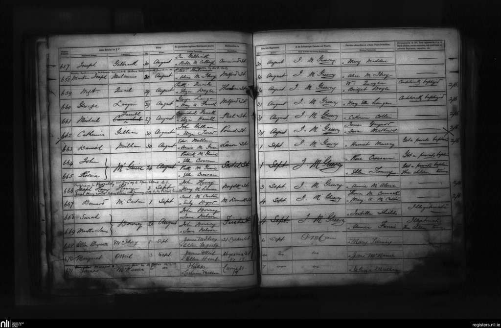 St. Peter's, Belfast city; County of Antrim; Diocese of Down and Connor. Baptisms, Aug. 1880 to Sep. 1880