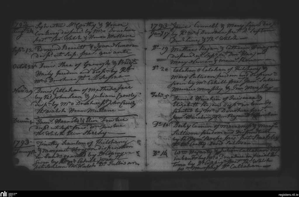 Donaghmore; County of Cork; Diocese of Cloyne. Marriages, Aug. 1792 to Feb. 1793