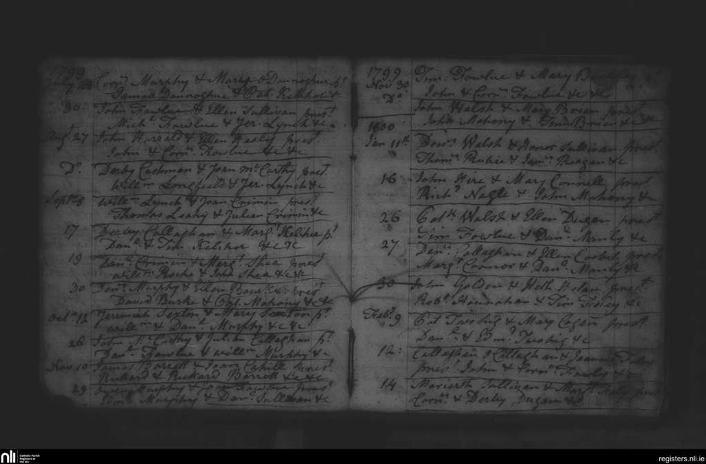 Donaghmore; County of Cork; Diocese of Cloyne. Marriages, July 1799 to Feb. 1800