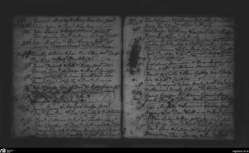 Donaghmore; County of Cork; Diocese of Cloyne. Marriages, July 1803 to Jan. 1804
