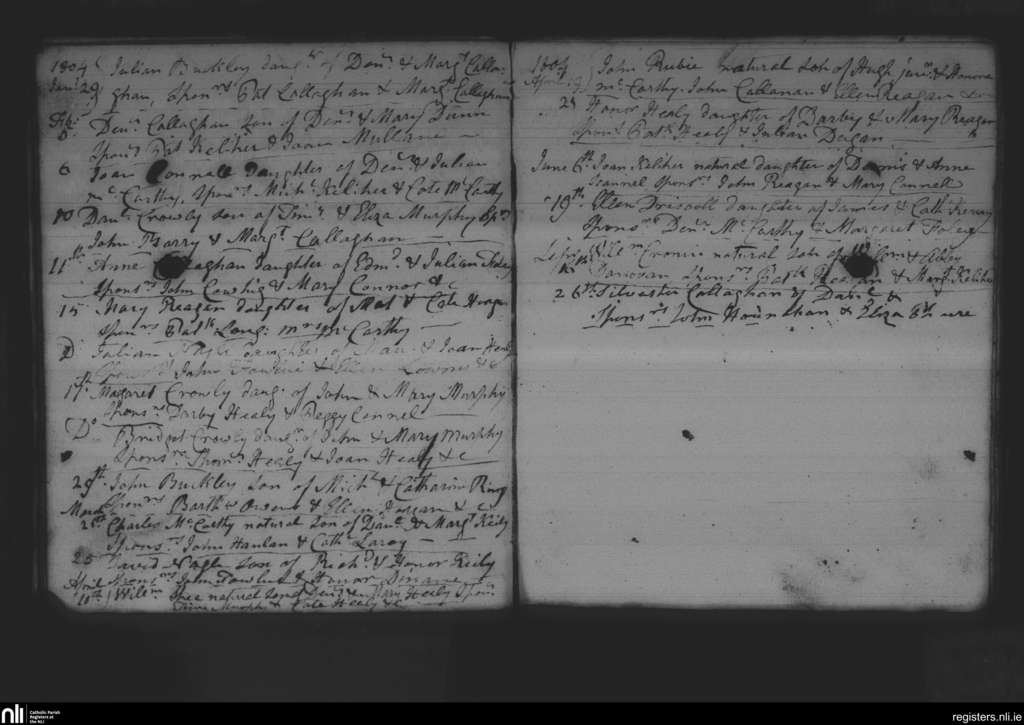 Donaghmore; County of Cork; Diocese of Cloyne. Baptisms, Jan. 1804 to Sep. 1804