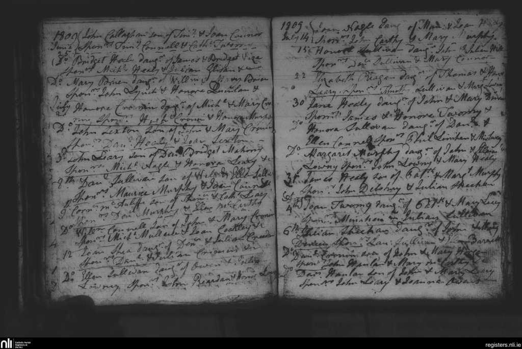 Donaghmore; County of Cork; Diocese of Cloyne. Baptisms, June 1809 to Aug. 1809