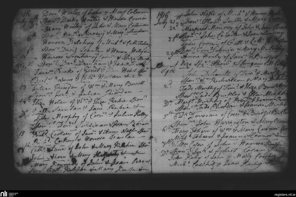 Donaghmore; County of Cork; Diocese of Cloyne. Baptisms, July 1816 to Aug. 1816