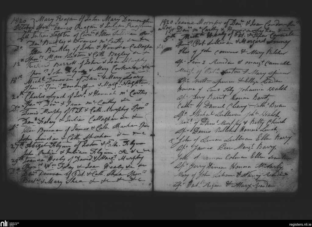 Donaghmore; County of Cork; Diocese of Cloyne. Baptisms, Oct. 1820 to Nov. 1820