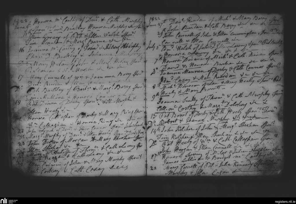Donaghmore; County of Cork; Diocese of Cloyne. Baptisms, June 1822 to July 1822