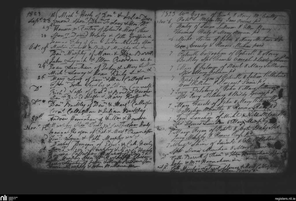 Donaghmore; County of Cork; Diocese of Cloyne. Baptisms, Sep. 1823 to Nov. 1823