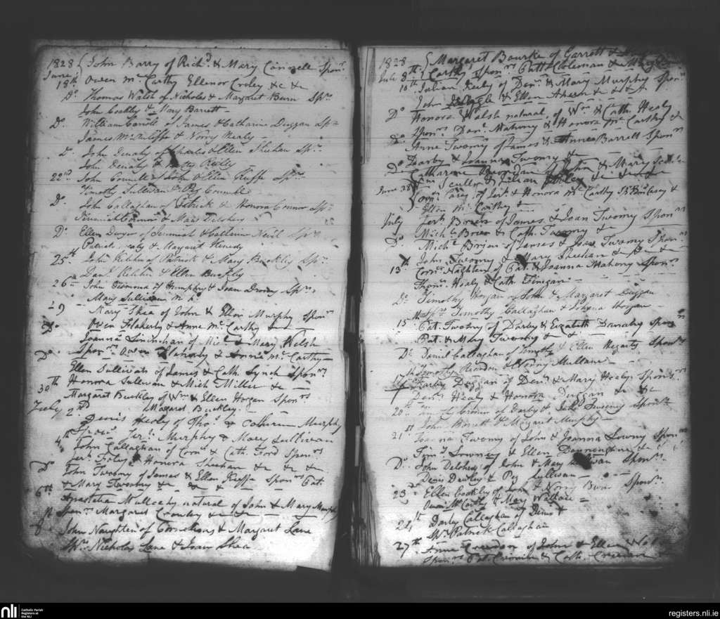 Donaghmore; County of Cork; Diocese of Cloyne. Baptisms, June 1828 to July 1828