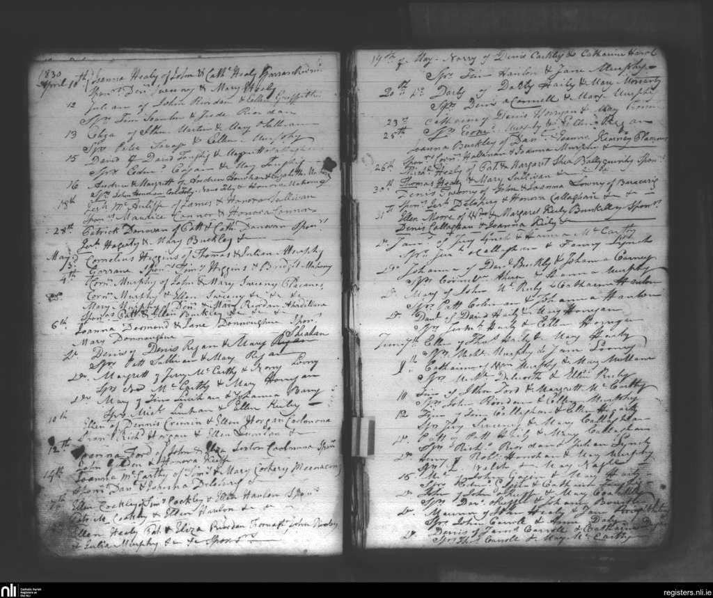 Donaghmore; County of Cork; Diocese of Cloyne. Baptisms, Apr. 1830 to June 1830