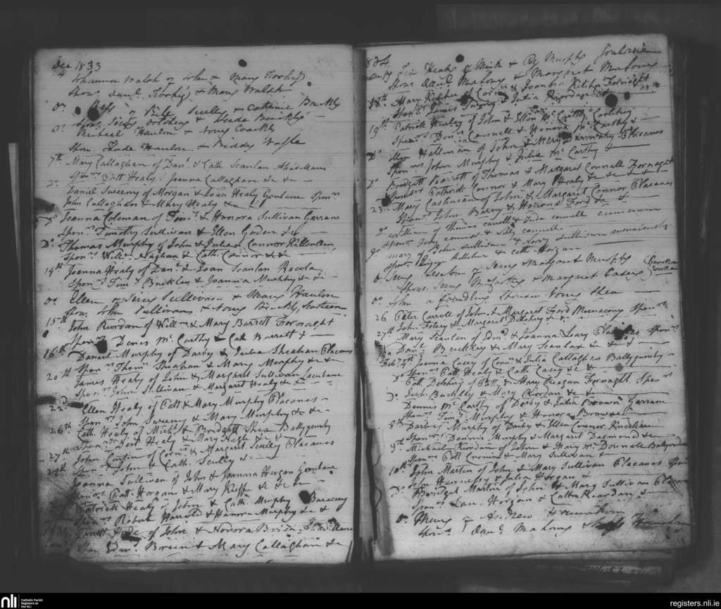 Donaghmore; County of Cork; Diocese of Cloyne. Baptisms, Dec. 1833 to Feb. 1834