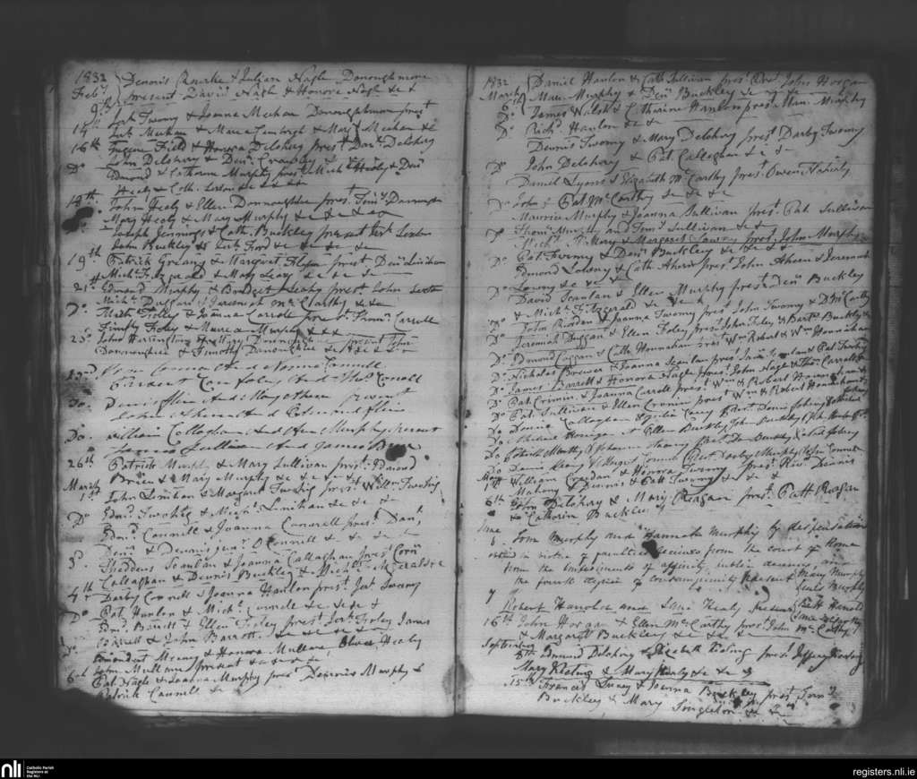 Donaghmore; County of Cork; Diocese of Cloyne. Marriages, Feb. 1832 to Sep. 1832