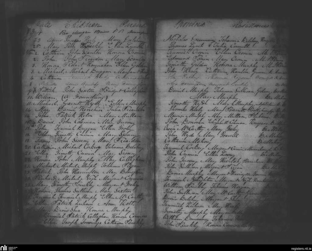Donaghmore; County of Cork; Diocese of Cloyne. Baptisms, Oct. 1834 to Nov. 1834