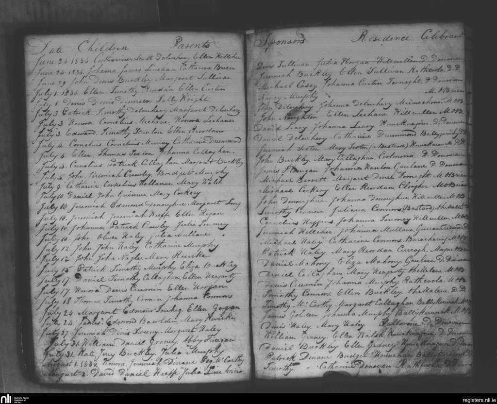 Donaghmore; County of Cork; Diocese of Cloyne. Baptisms, June 1836 to Aug. 1836