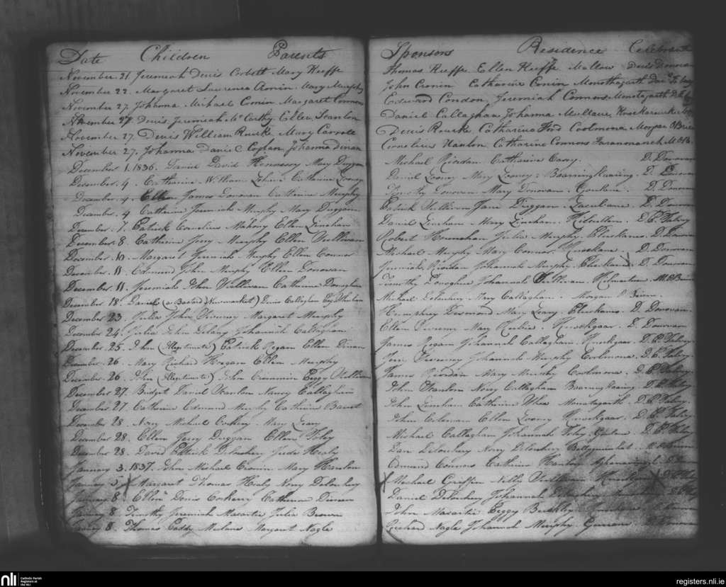 Donaghmore; County of Cork; Diocese of Cloyne. Baptisms, Nov. 1836 to Jan. 1837