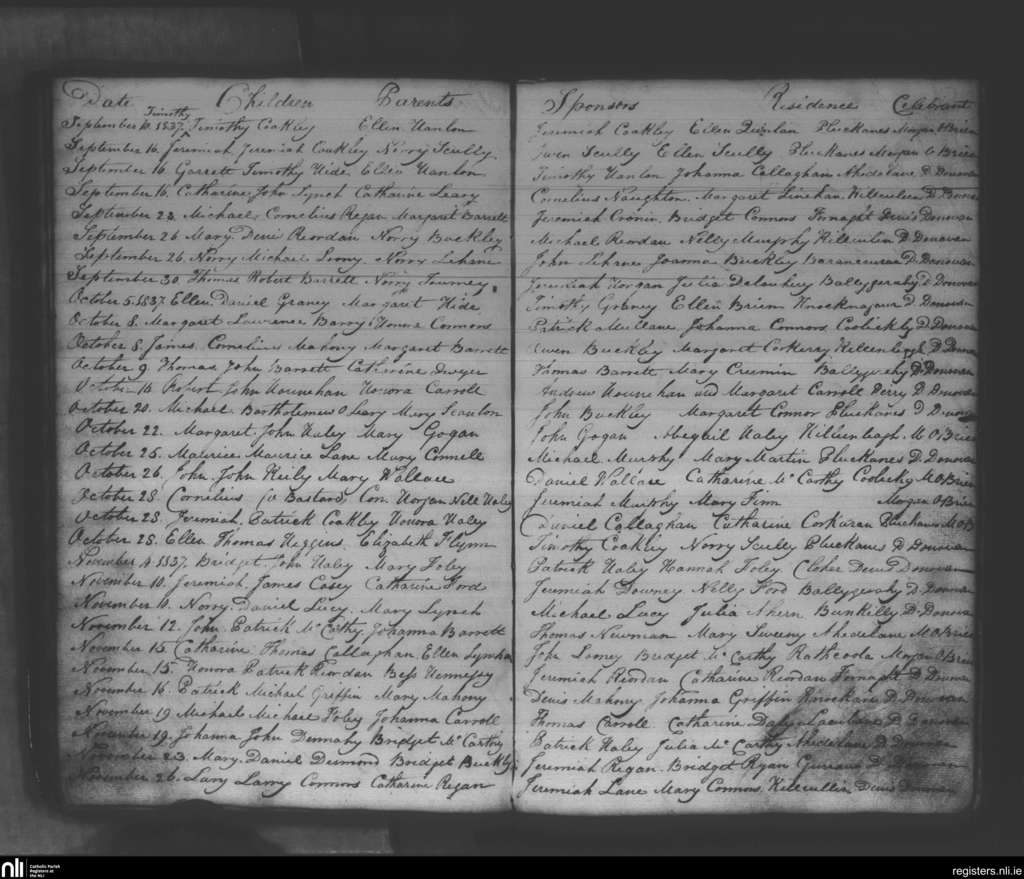 Donaghmore; County of Cork; Diocese of Cloyne. Baptisms, Sep. 1837 to Nov. 1837