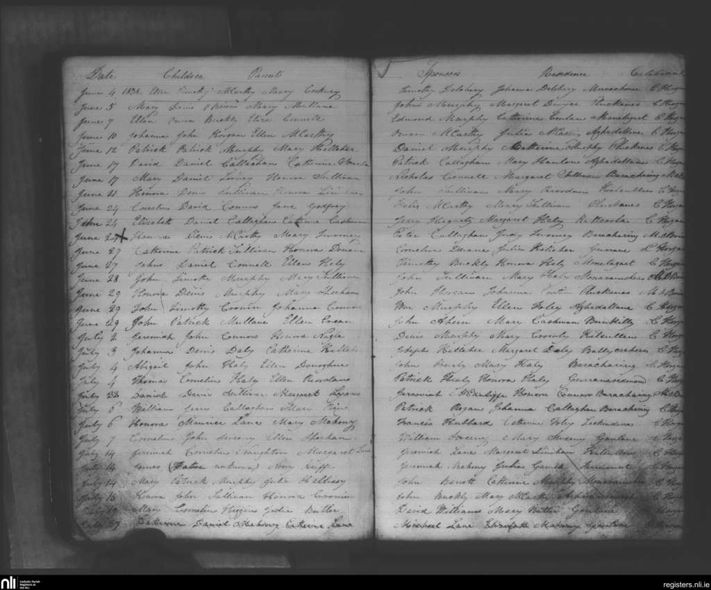 Donaghmore; County of Cork; Diocese of Cloyne. Baptisms, June 1838 to July 1838