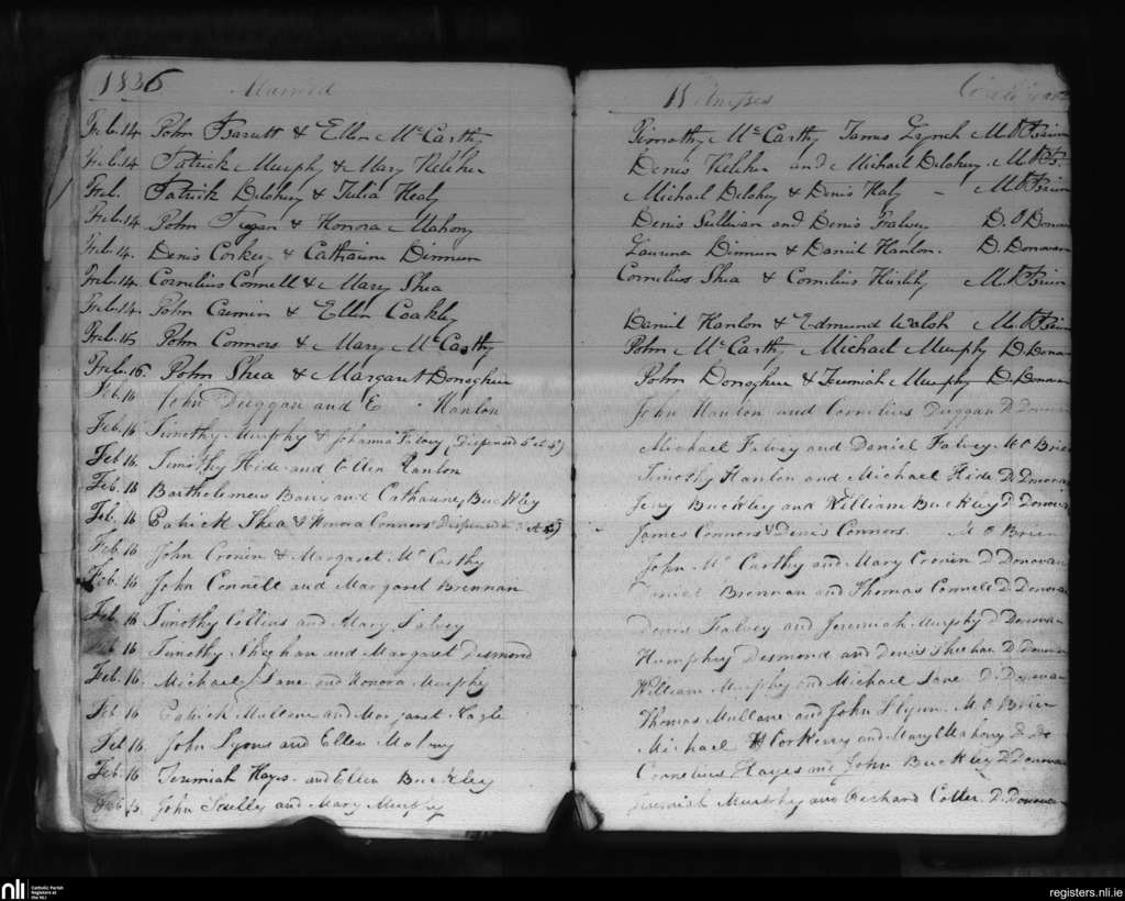 Donaghmore; County of Cork; Diocese of Cloyne. Marriages, Feb. 1836
