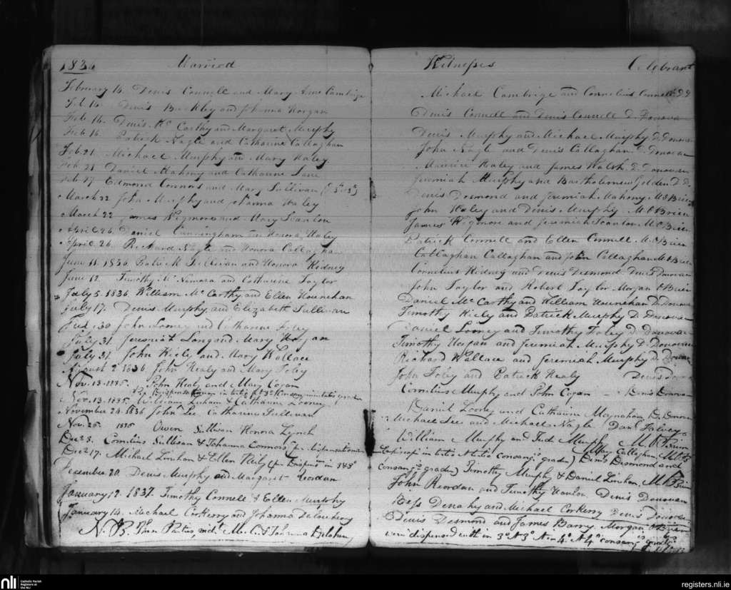 Donaghmore; County of Cork; Diocese of Cloyne. Marriages, Feb. 1836 to Jan. 1837