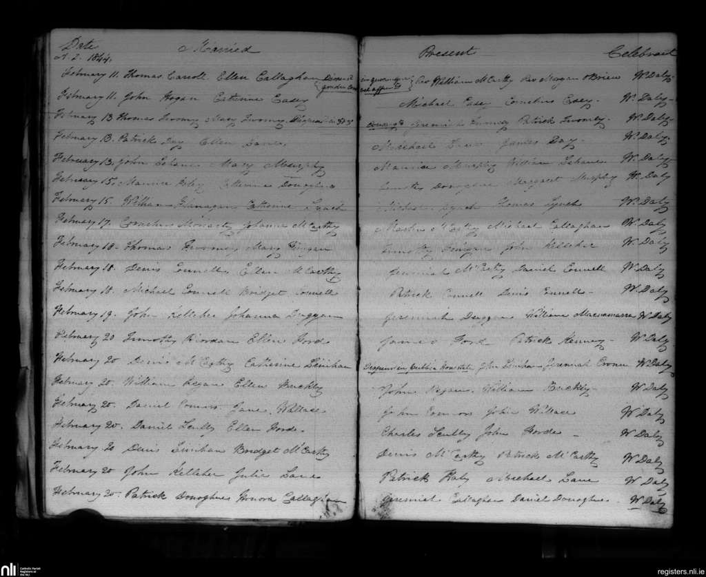 Donaghmore; County of Cork; Diocese of Cloyne. Marriages, Feb. 1844