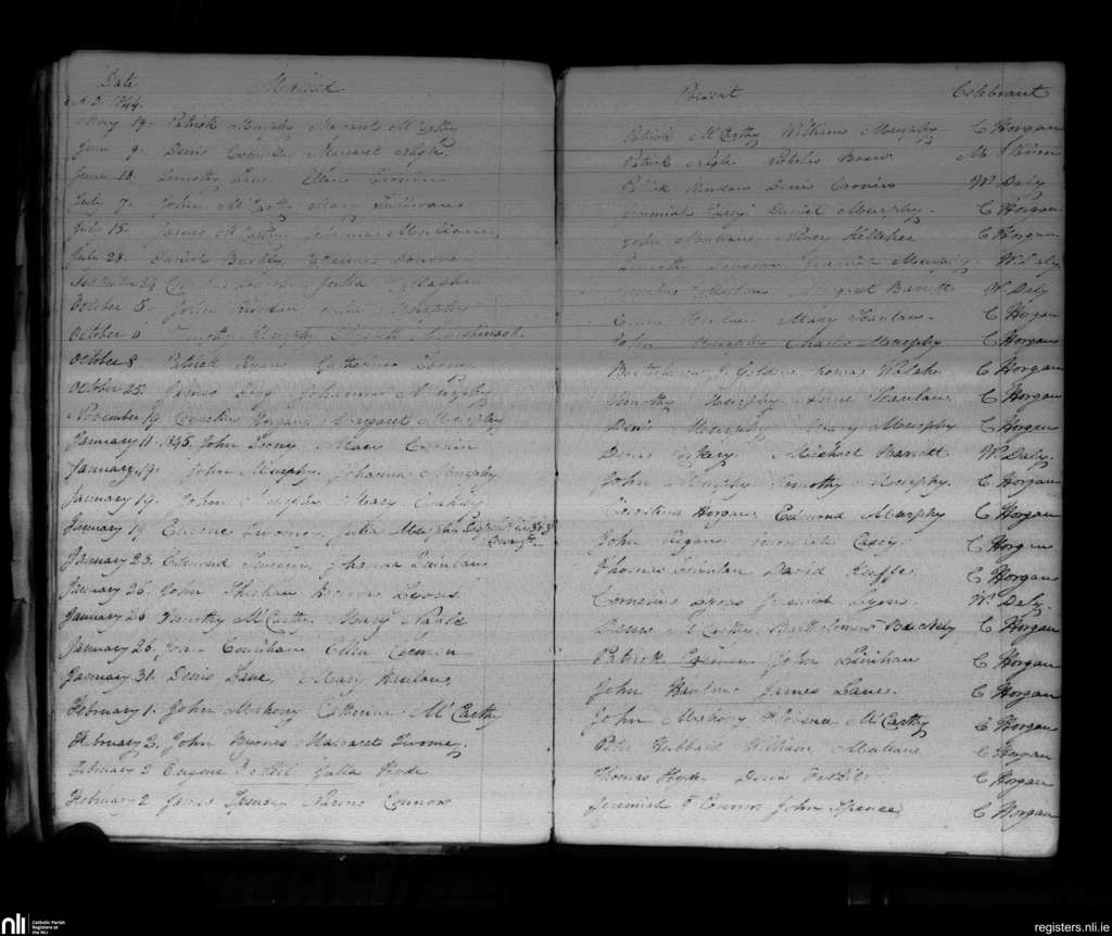 Donaghmore; County of Cork; Diocese of Cloyne. Marriages, May 1844 to Feb. 1845