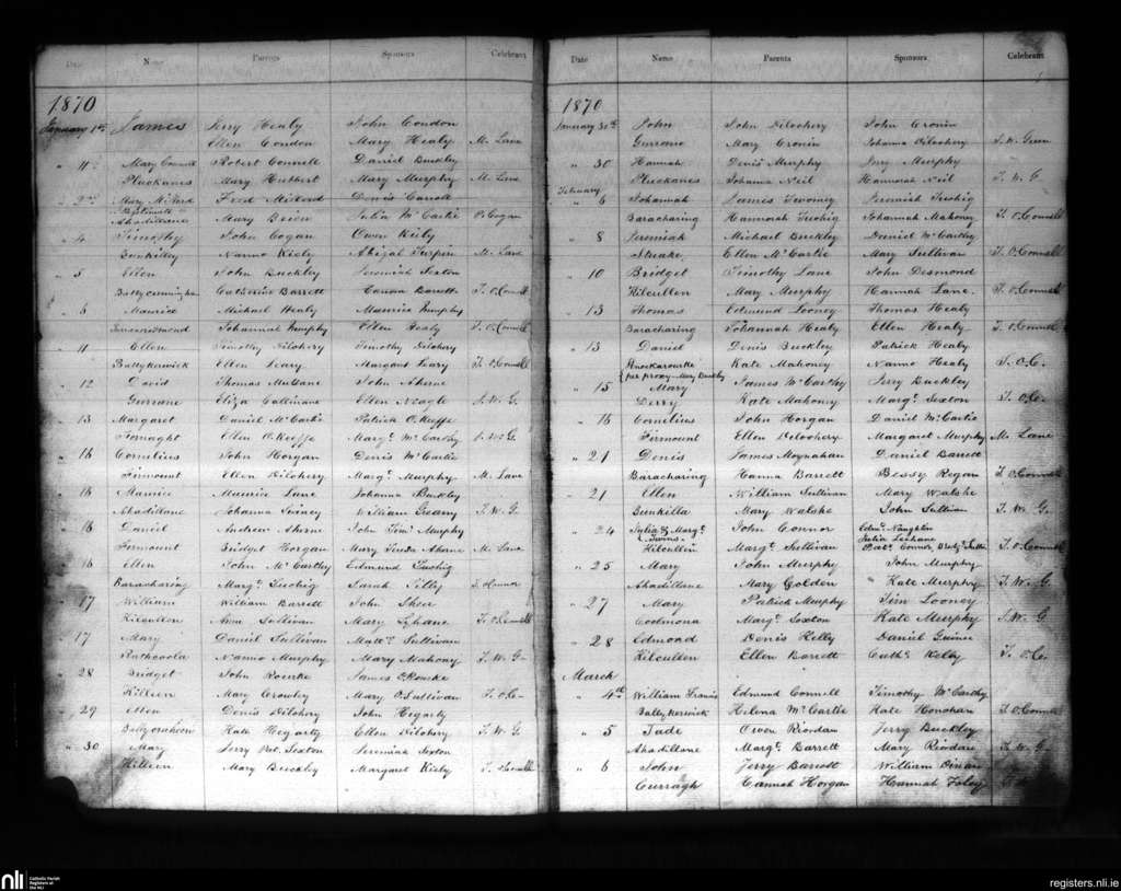 Donaghmore; County of Cork; Diocese of Cloyne. Baptisms, Jan. 1870 to Mar. 1870