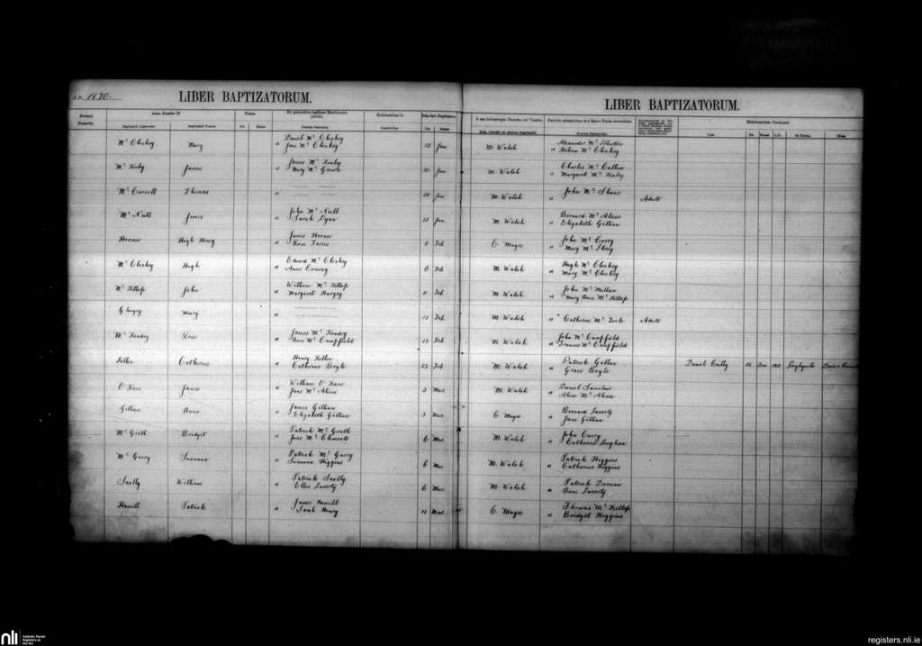 Loughguile; County of Antrim; Diocese of Down and Connor. Baptisms, Jan. 1870 to Mar. 1870