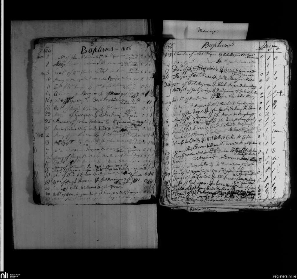 Loughinisland; County of Down; Diocese of Down and Connor. Baptisms, Mar. 1806 to Dec. 1806