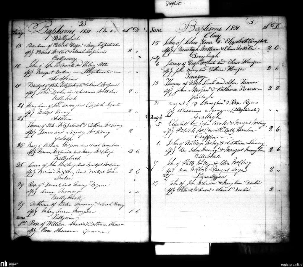 Annaghlone; County of Down; Diocese of Dromore. Baptisms, May 1851 to Aug. 1851