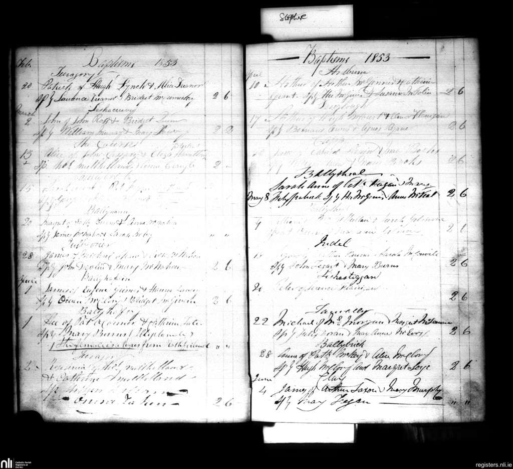 Annaghlone; County of Down; Diocese of Dromore. Baptisms, Feb. 1853 to June 1853