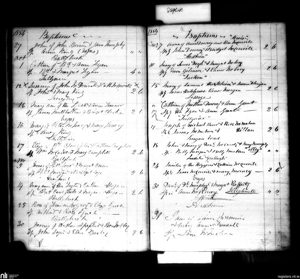 Annaghlone; County of Down; Diocese of Dromore. Baptisms, Sep. 1854 to Dec. 1854