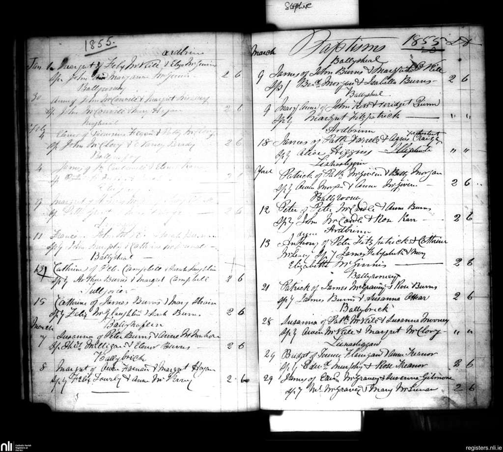 Annaghlone; County of Down; Diocese of Dromore. Baptisms, Jan. 1855 to Apr. 1855