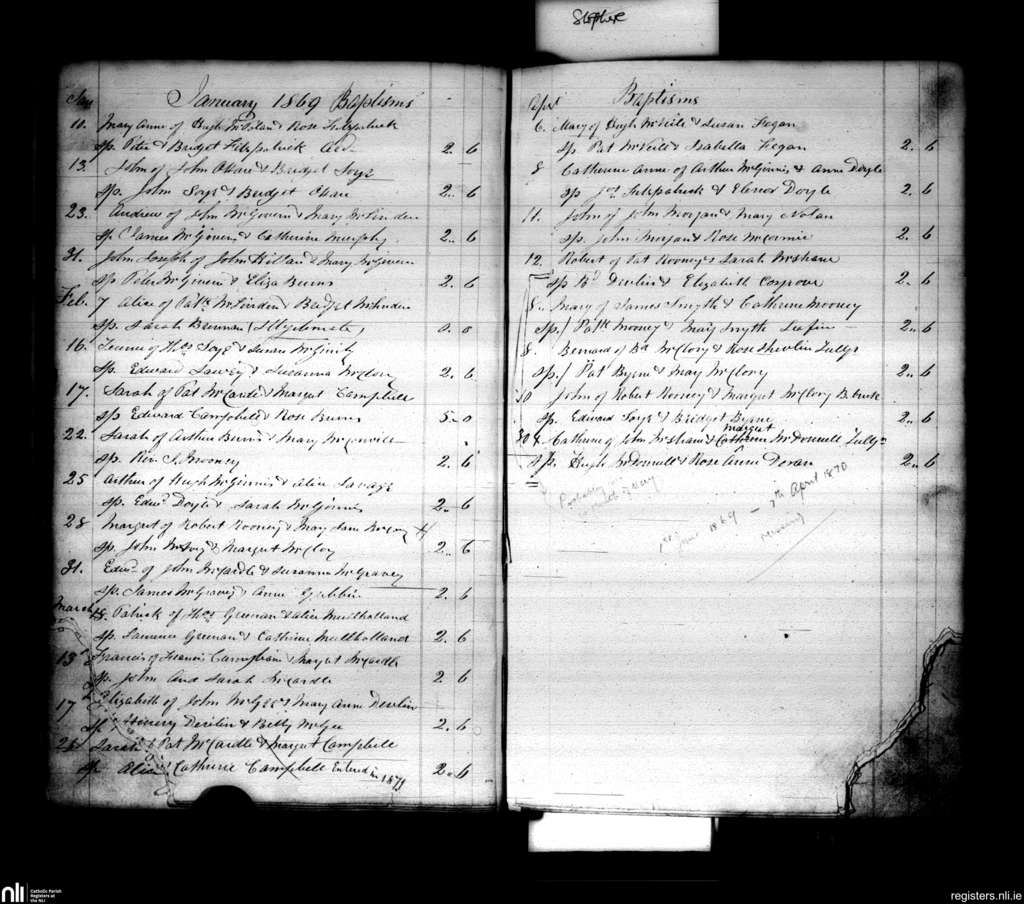 Annaghlone; County of Down; Diocese of Dromore. Baptisms, Jan. 1869 to Sep. 1869