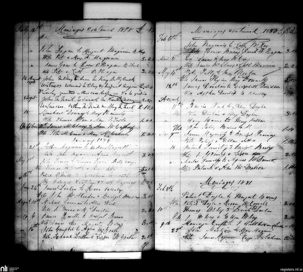 Annaghlone; County of Down; Diocese of Dromore. Marriages, July 1878 to Feb. 1881