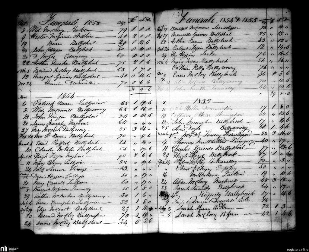 Annaghlone; County of Down; Diocese of Dromore. Funerals, Oct. 1853 to July 1855
