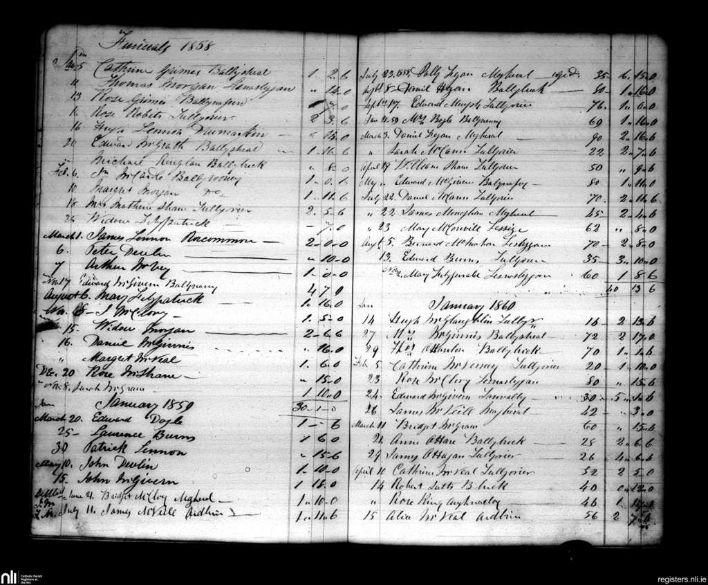 Annaghlone; County of Down; Diocese of Dromore. Funerals, Jan. 1858 to Apr. 1860