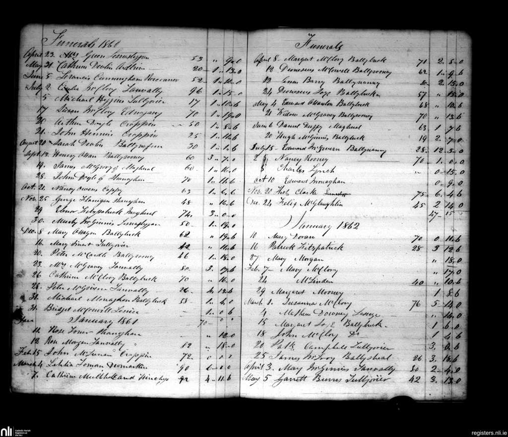 Annaghlone; County of Down; Diocese of Dromore. Funerals, Apr. 1860 to May 1862