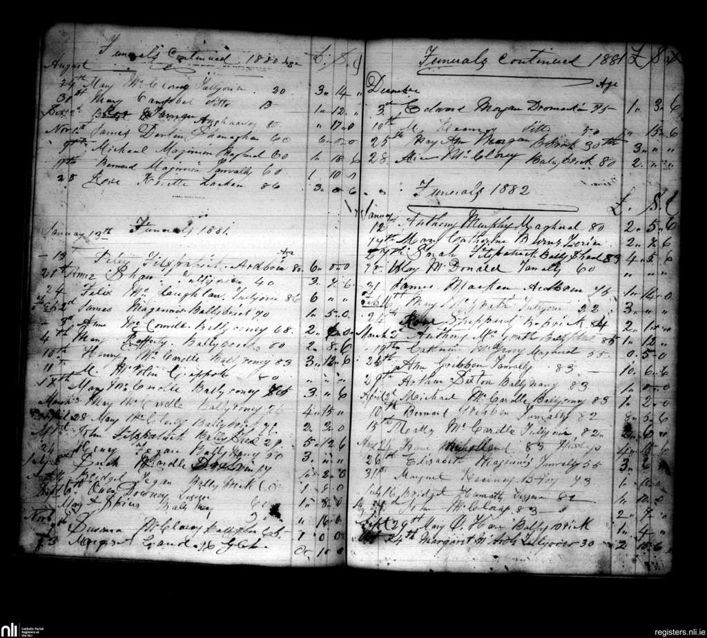 Annaghlone; County of Down; Diocese of Dromore. Funerals, Aug. 1880 to Oct. 1881
