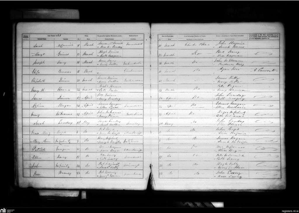 Ballynahinch and Dunmore; County of Down; Diocese of Dromore. Baptisms, Mar. 1864 to May 1864
