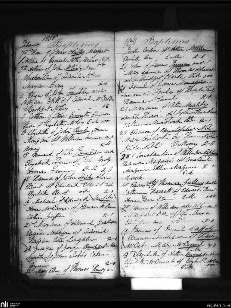 Tullylish; County of Down; Diocese of Dromore. Baptisms, Feb. 1838 to Mar. 1838