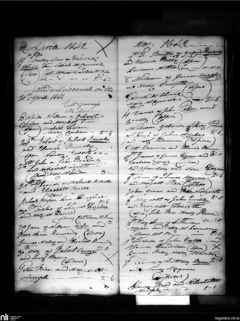 Tullylish; County of Down; Diocese of Dromore. Baptisms, Apr. 1842 to May 1842