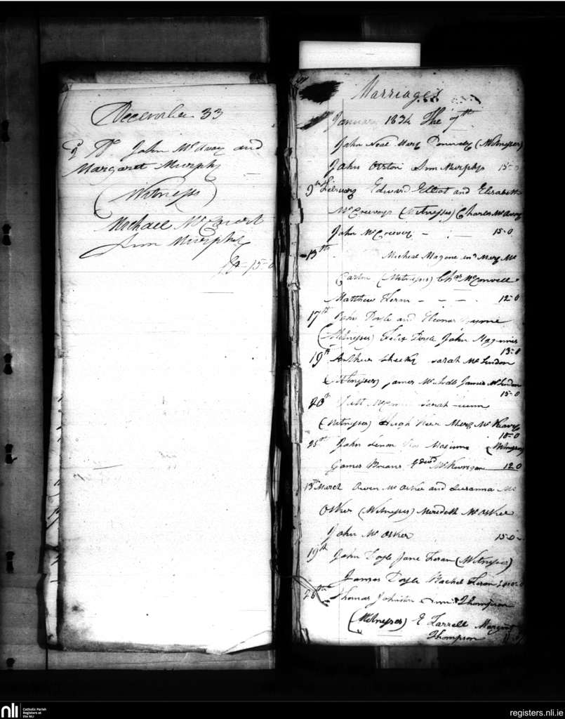 Tullylish; County of Down; Diocese of Dromore. Marriages, Dec. 1833 to Mar. 1834